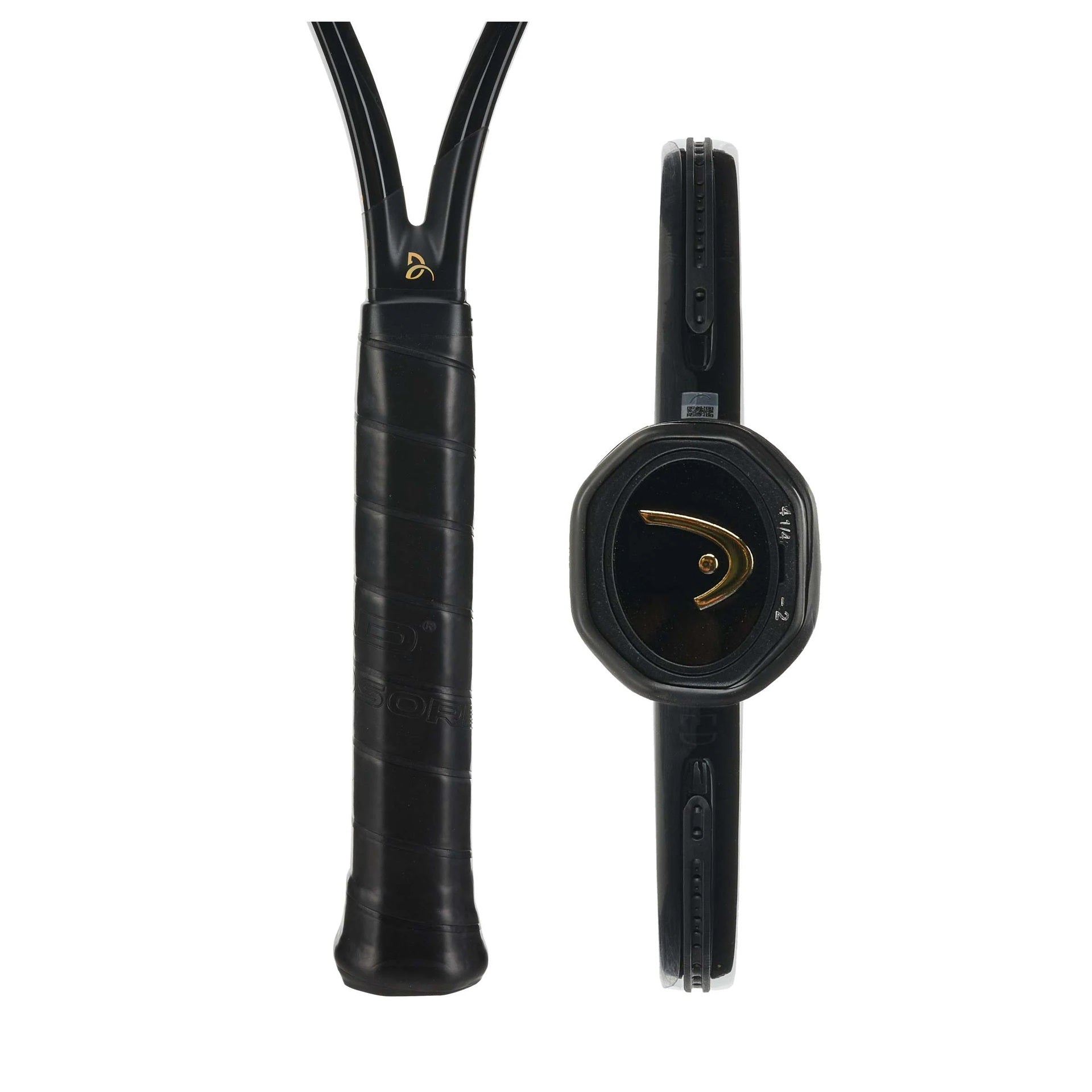 Detalles en oro con el logotipo de Novak y la marca HEAD en oro