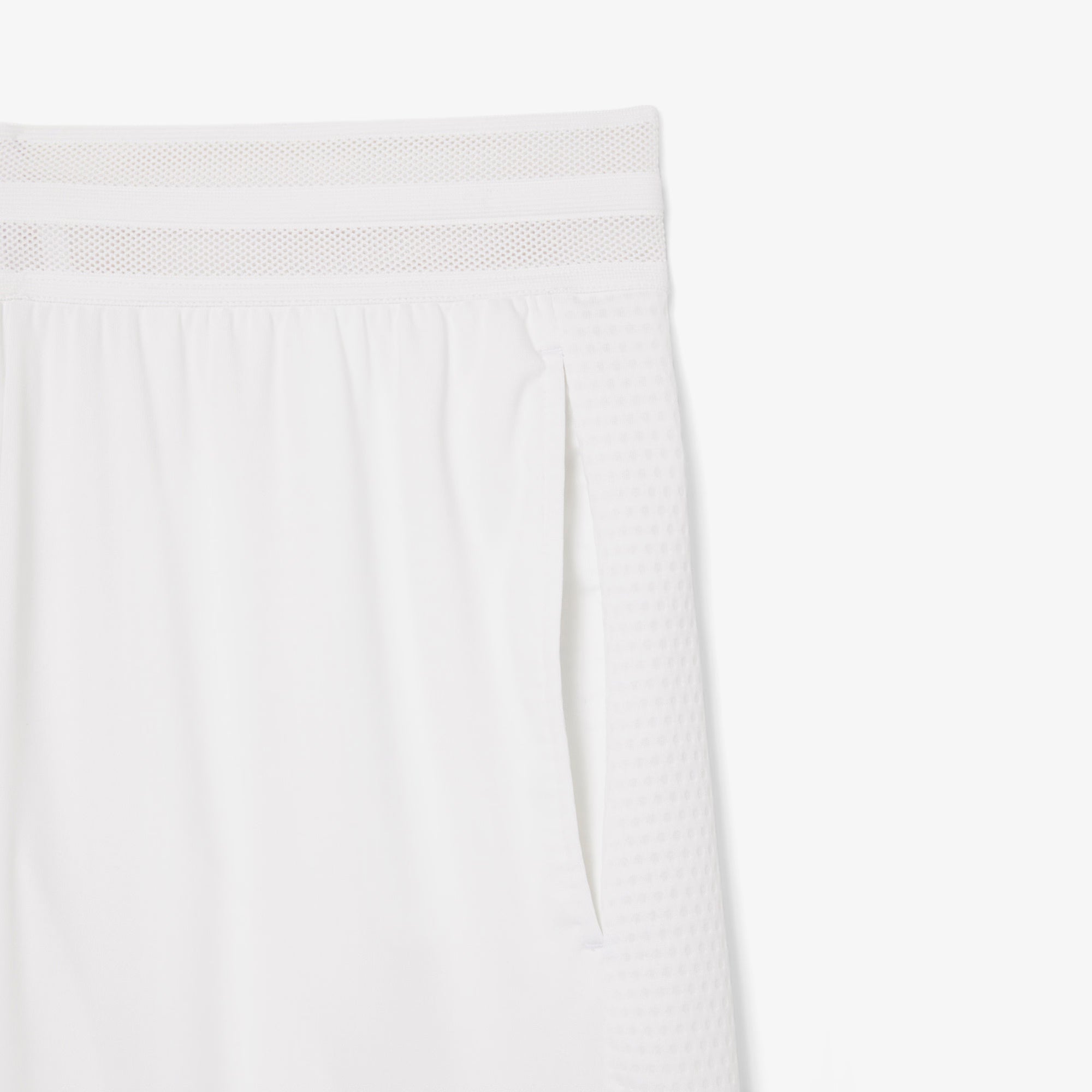 Este pantalón corto, usado en el circuito profesional por jugadores embajadores de la marca Lacoste como Novak Djokovic, Daniil Medvedev, se ha diseñado por y para el rendimiento. Confeccionado en un tejido elástico ligero para una mayor libertad de movimiento, incorpora la tecnología Ultra Dry para ofrecer una sensación de frescor total. Un diseño técnico de líneas elegantes que se adorna de unas rayas y unos paneles texturizados para garantizar el mejor look sobre la pista.
